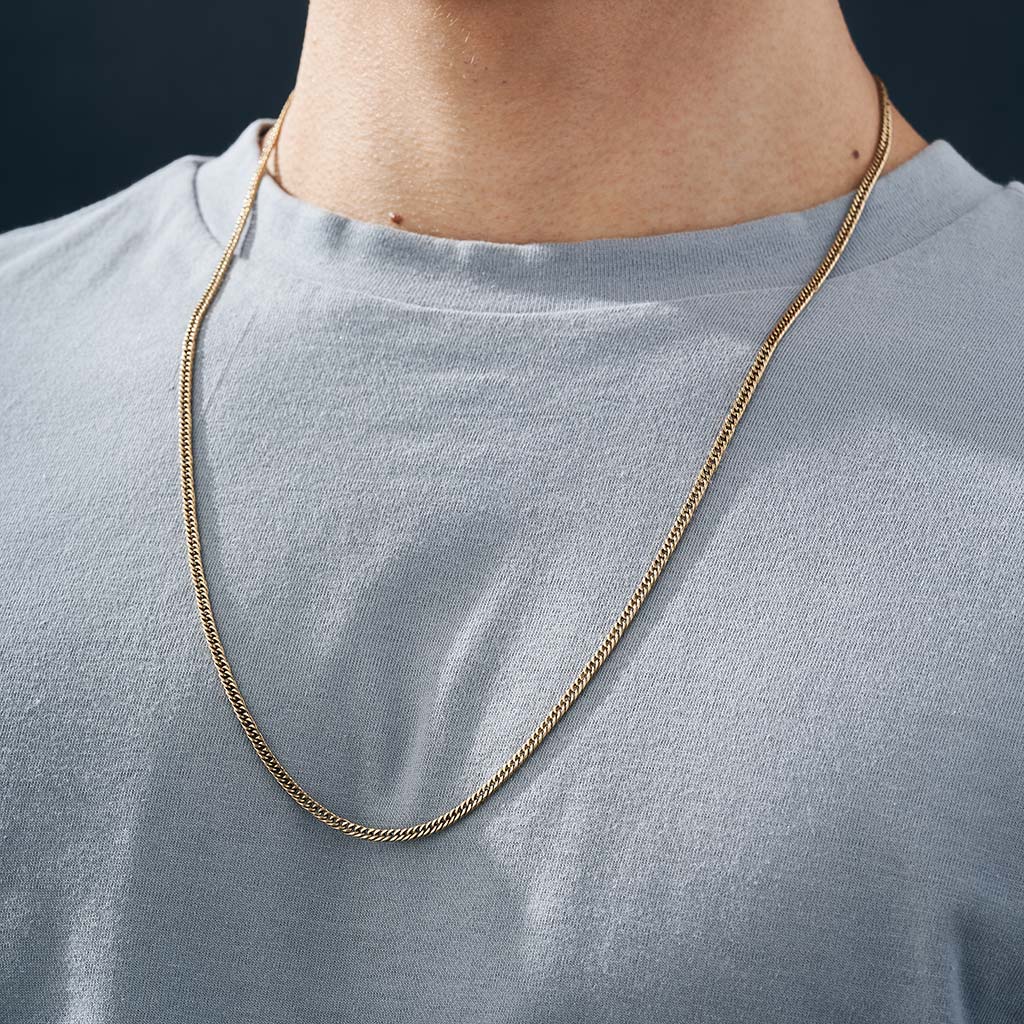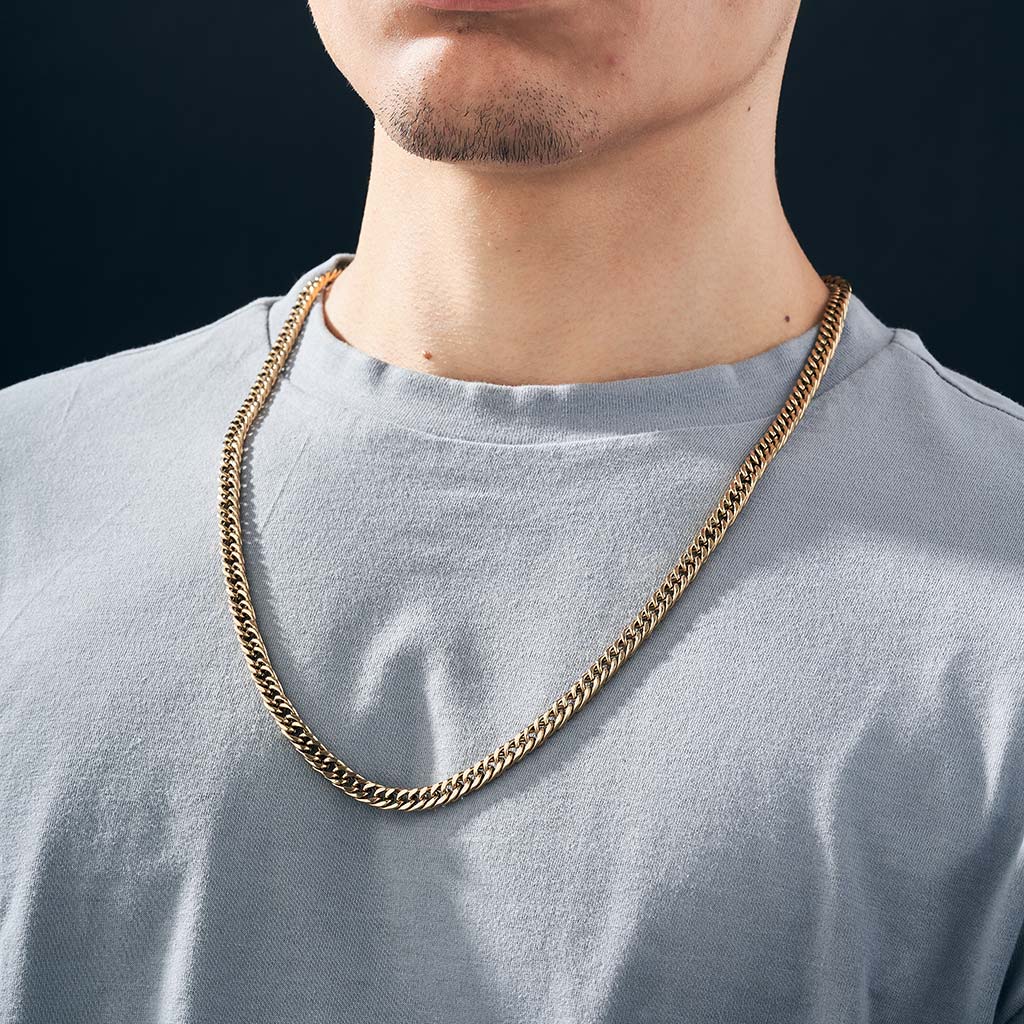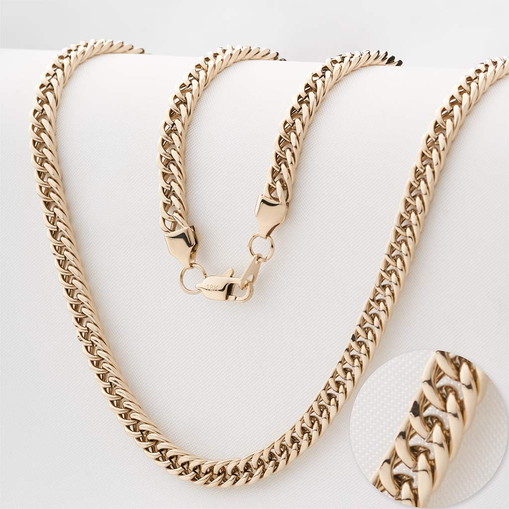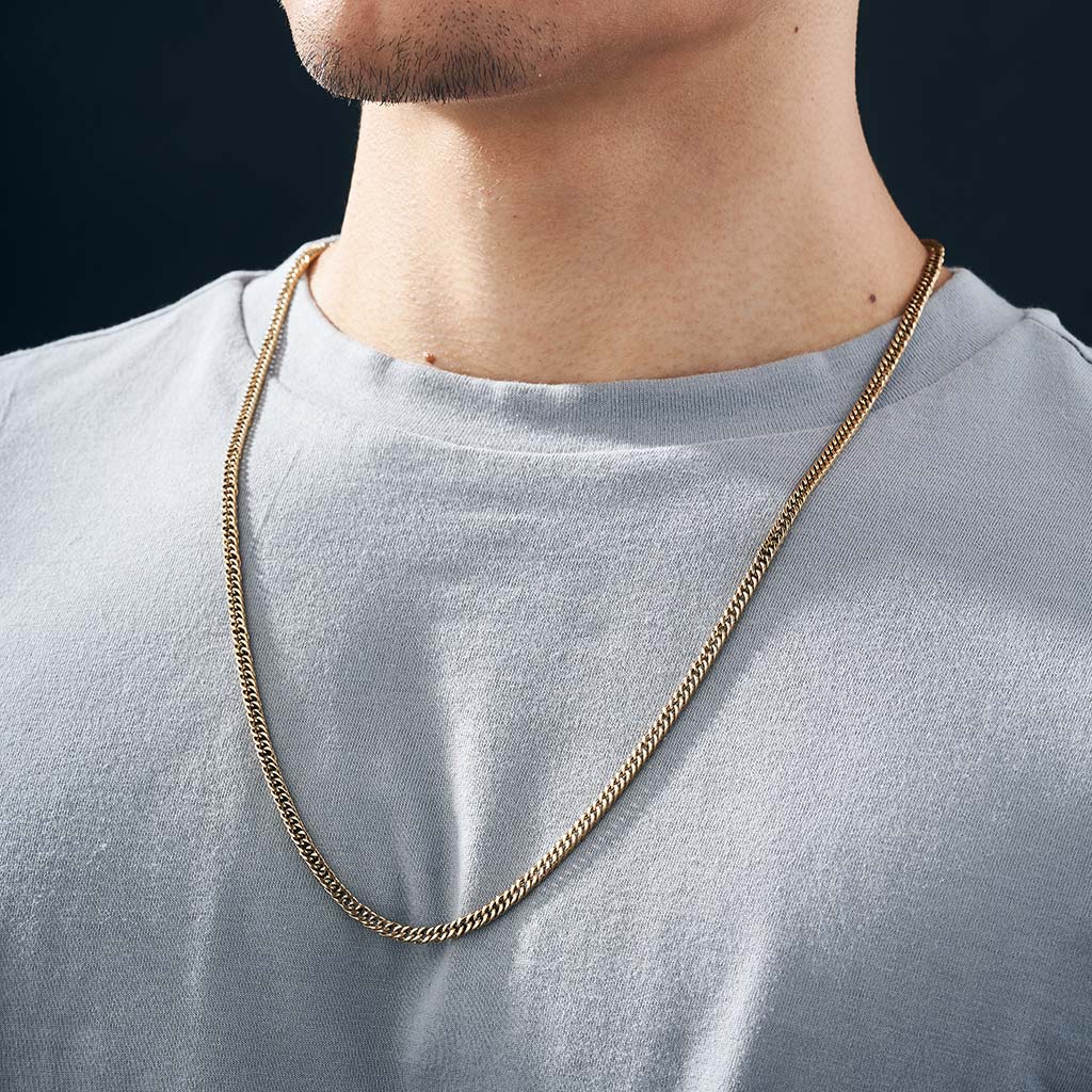 Our chain it's made with Titanium Gold looks and feels like solid gold, but isn't solid gold . Each piece of our jewelry is created by designers and professional jewelers.