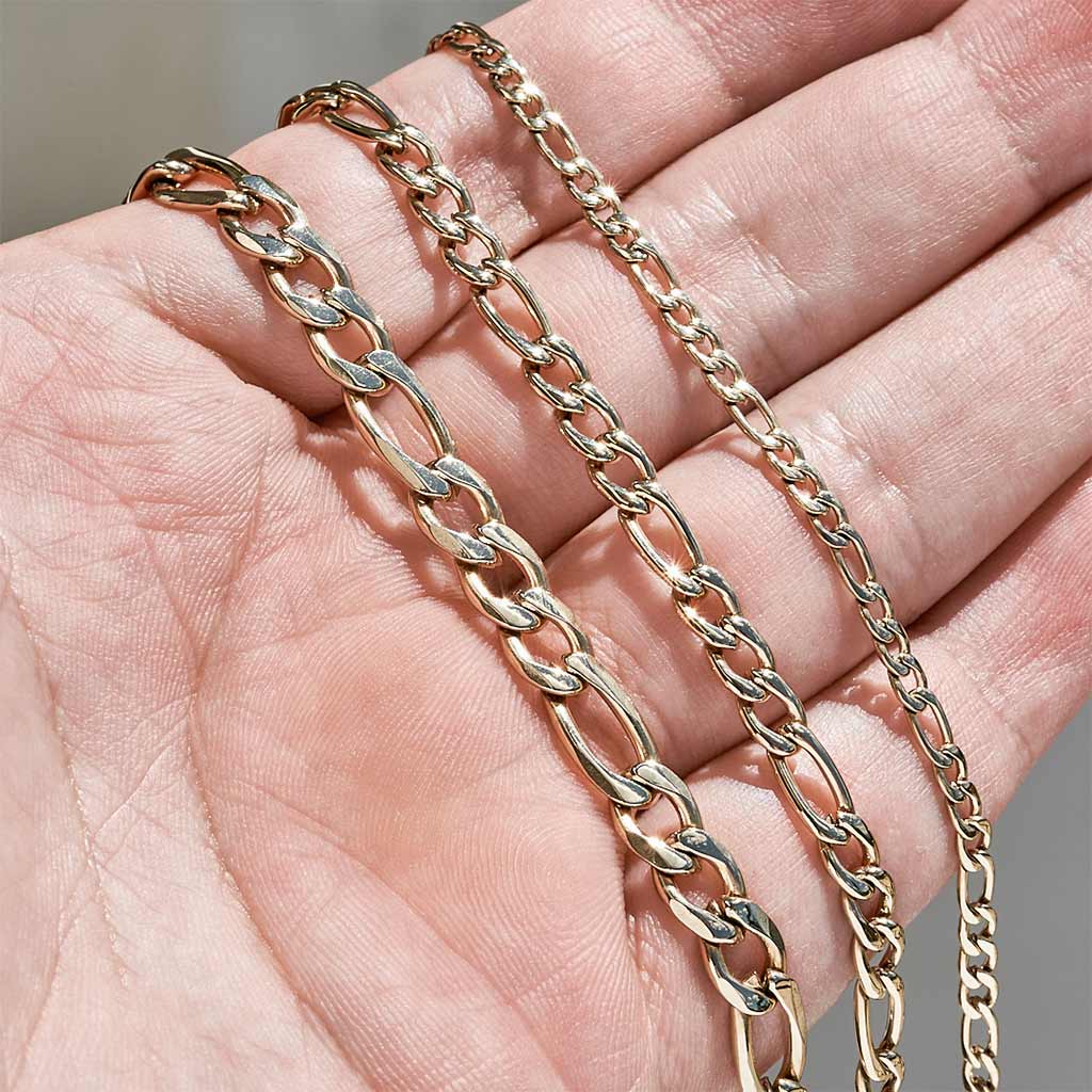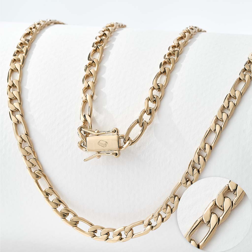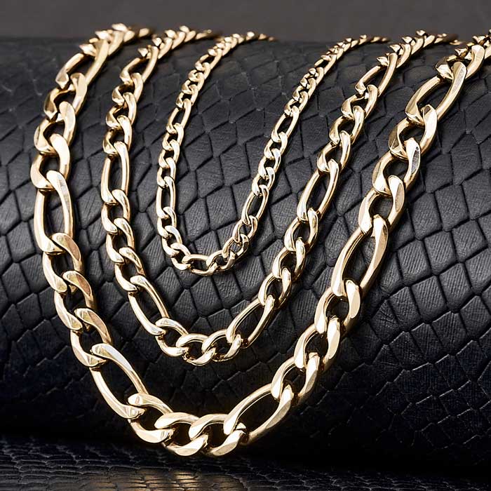 Our chain is made with Titanium Gold, our exclusive material that looks and feels like solid 18k gold but at a much better price. It's crafted by professional jewelers and designers to make sure every detail stands out.