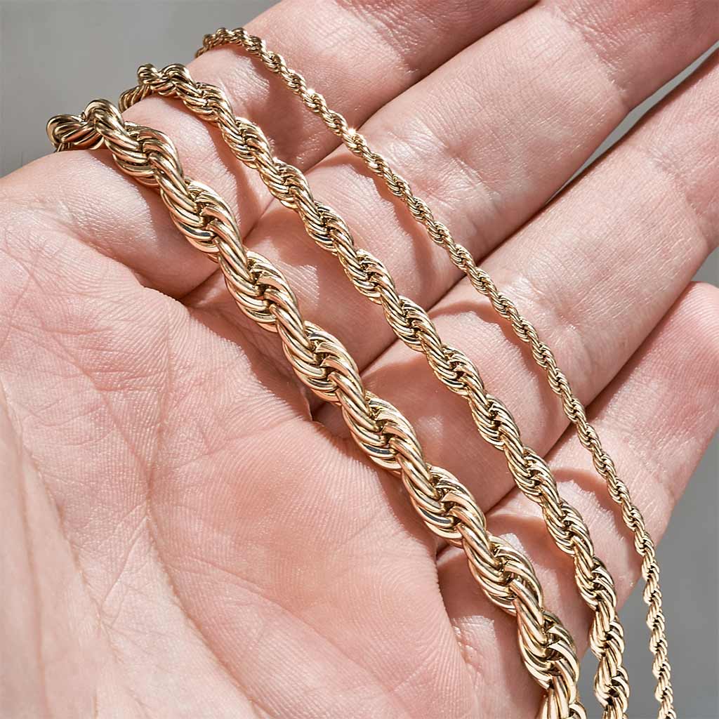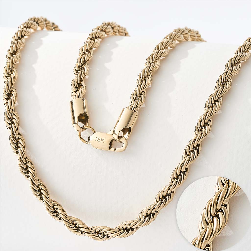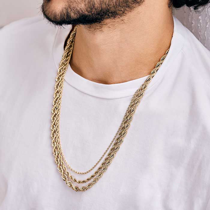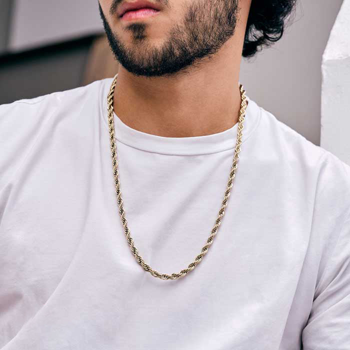 Our chain is made with Titanium Gold, our exclusive material that looks and feels like solid 18k gold but at a much better price. It's crafted by professional jewelers and designers to make sure every detail stands out.