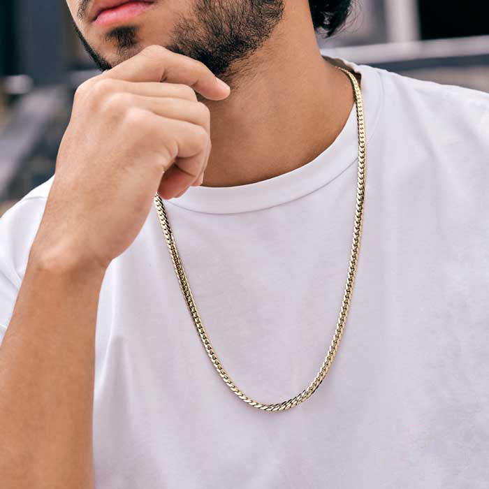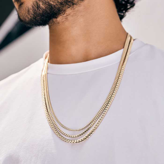 Our chain is made with Titanium Gold, our exclusive material that looks and feels like solid 18k gold but at a much better price. It's crafted by professional jewelers and designers to make sure every detail stands out.