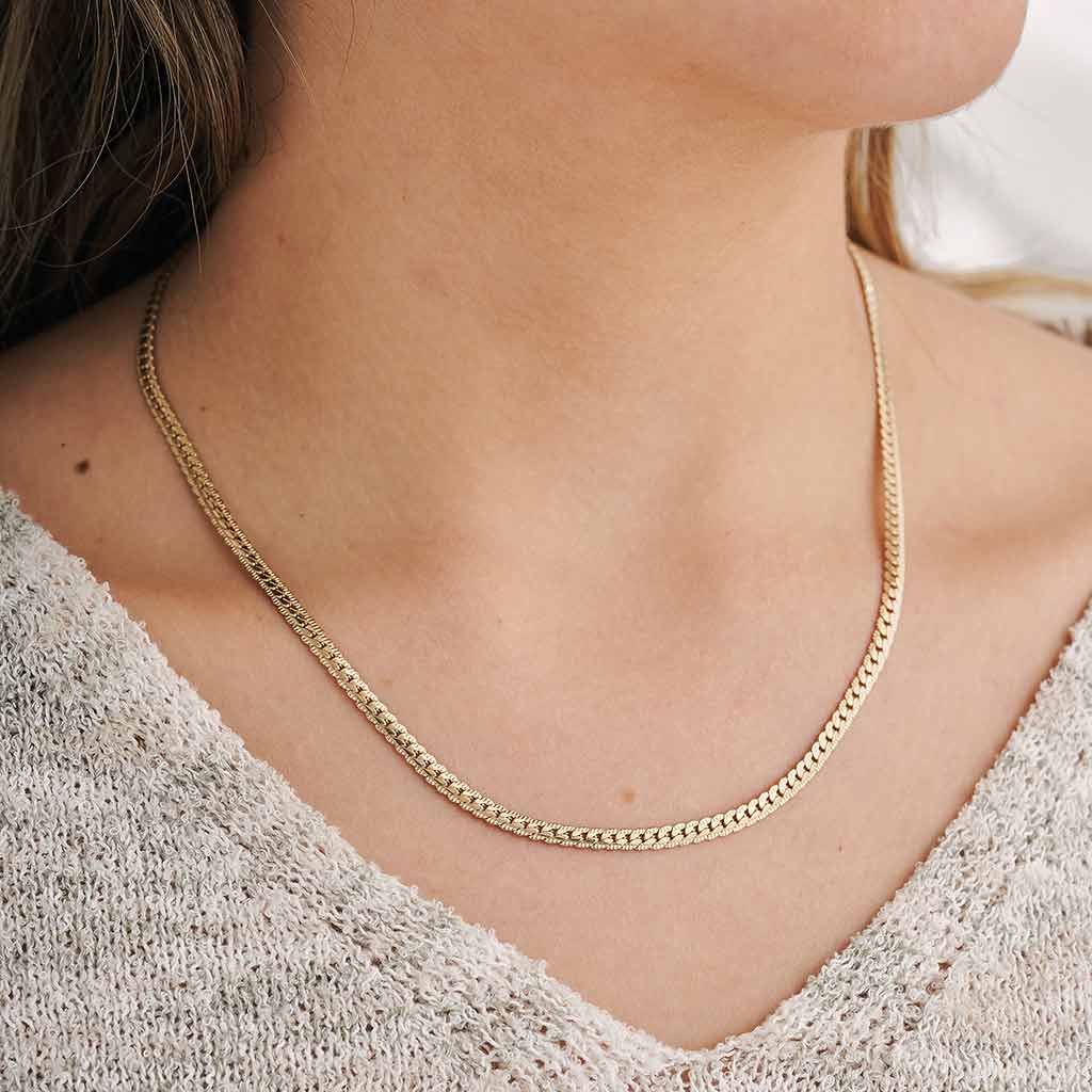 Our chain is made with Titanium Gold, our exclusive material that looks and feels like solid 18k gold but at a much better price. It's crafted by professional jewelers and designers to make sure every detail stands out.