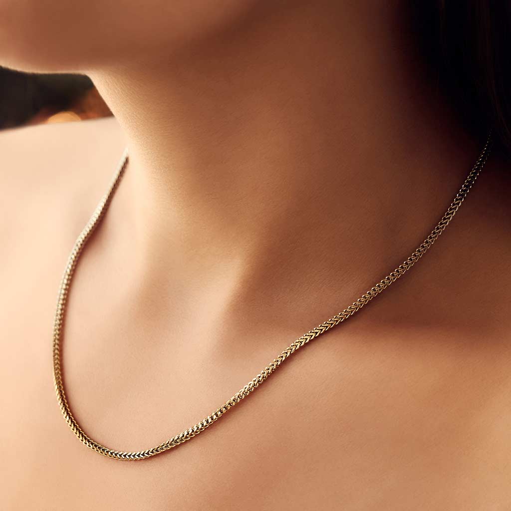 Our chain is made with Titanium Gold, our exclusive material that looks and feels like solid 18k gold but at a much better price. It's crafted by professional jewelers and designers to make sure every detail stands out.